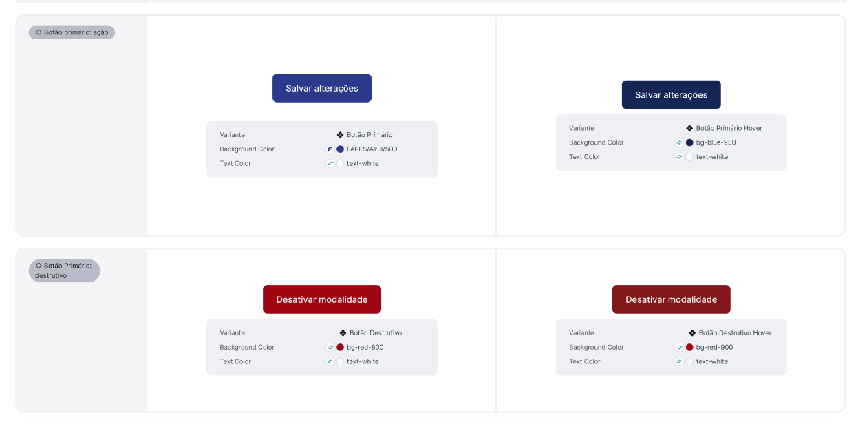 • Alinhamento com Tailwind CSS: Adaptei a documentação dos componentes utilizando a lógica e as nomenclaturas de estilos do Tailwind V4; porque ao falar a mesma linguagem do framework utilizado pelo front-end, a tradução do design para o código torna-se muito mais fluida e intuitiva para o desenvolvedor.
