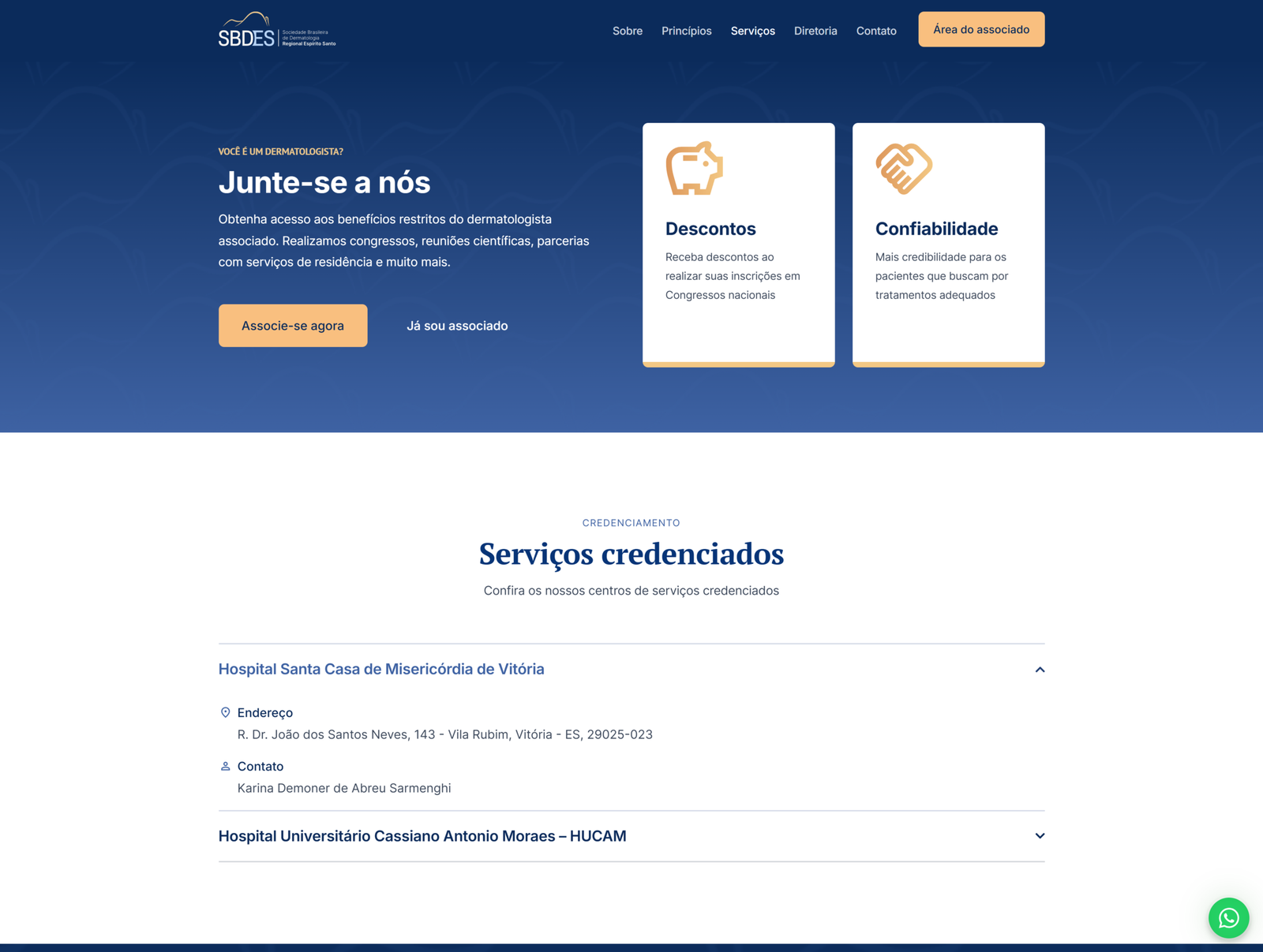 Redesign estratégico e desenvolvimento de portal institucional com e-commerce integrado (WooCommerce/Elementor) para a Sociedade Brasileira de Dermatologia Regional do Espírito Santo.